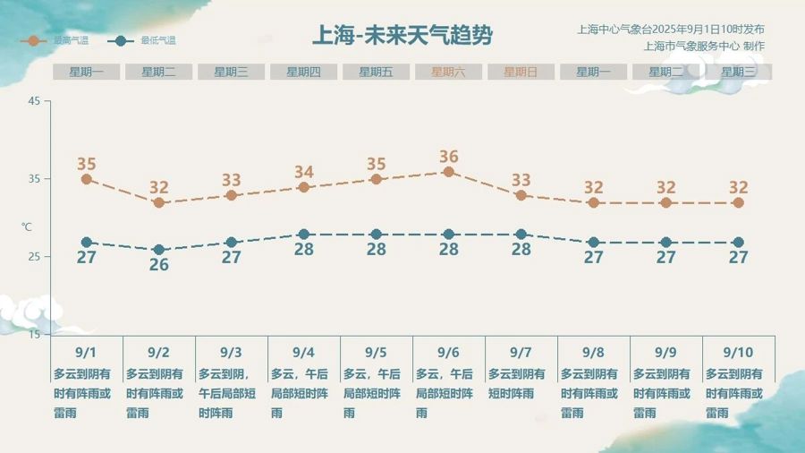 明天,上海气温预计终于要往下再跌一跌,预计全天气温在26~32℃,可以算是近期气温的低点了。周三起,副热带高压再度加强北抬,特别是周五和周六,上海处在副高中心附近,高温重现,“秋老虎”天气或现身。不过,清凉天气终于有消息了,下周副热带高压有所减退全国十大正规配资,本市雨水增多,热力下调。