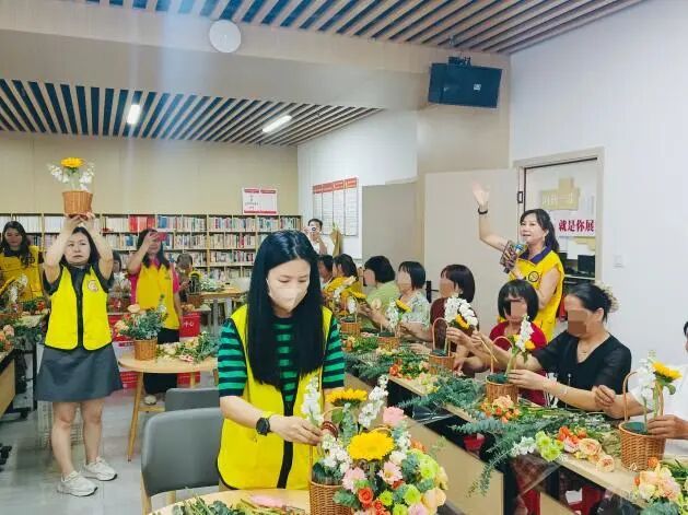 随后,雅媛服务队会员们开启实操指导环节,面对参与者提出的疑问耐心解答,同时鼓励大家发挥创意,打造独具个人风格的花艺作品。创作完成后,每位参与者展示自己的作品,分享设计思路与创作心得,现场满是成就感,欢声笑语不断。